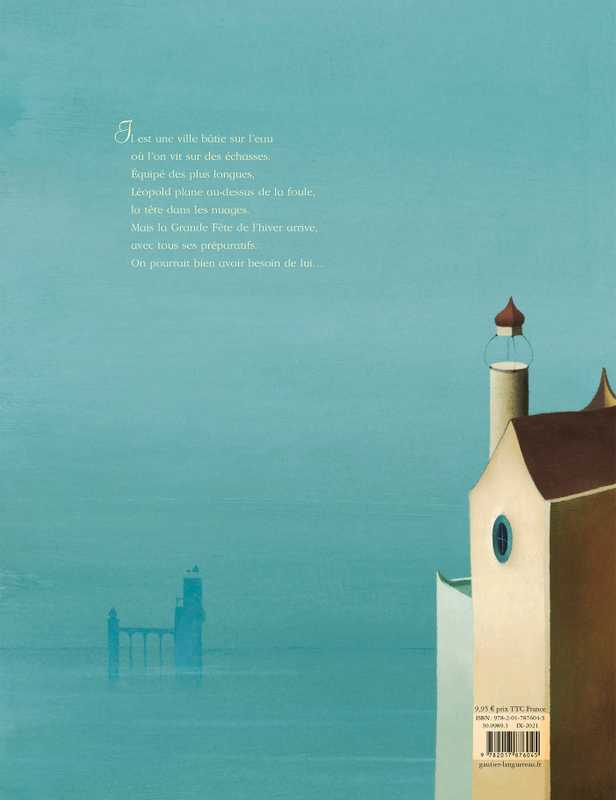 Il est une ville bâtie sur l'eau où les habitants vivent avec des échasses. Équipé des plus longues, Léopold plane au-dessus de la foule, la tête dans les nuages. Lorsqu'on l'appelle, il préfère rester en haut. Mais la Grande fête de l'hiver se préprare et les habitants vont avoir besoin de lui.