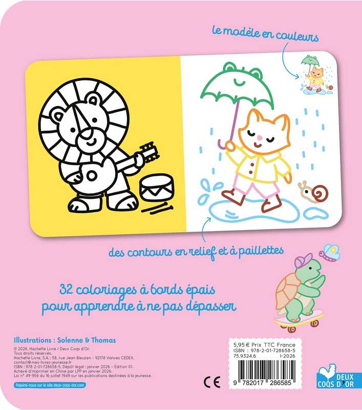 Retrouve 32 coloriages à bords épais pour apprendre à ne pas dépasser : certains avec des bords en relief et pailletés !