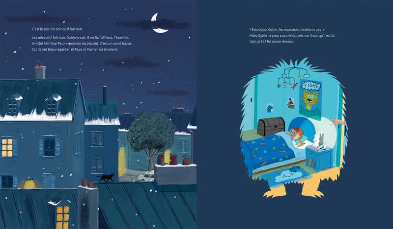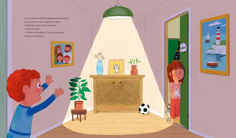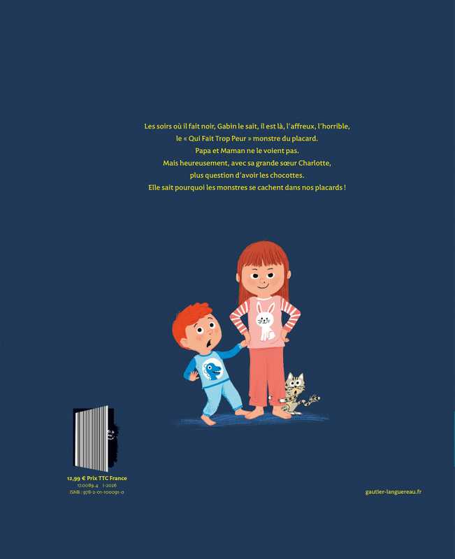 Les grands disent que les monstres n’existent pas, mais le soir quand il fait noir, Gabin en est certain, surgit le « qui fait trop peur » monstre du placard ! Il n’y a que Charlotte, sa grande sœur, qui veut bien le croire. Mais avec elle, plus question d’avoir les chocottes ! Elle en est persuadée, les monstres sont effrayés parce qu’ils sont loin de chez eux.