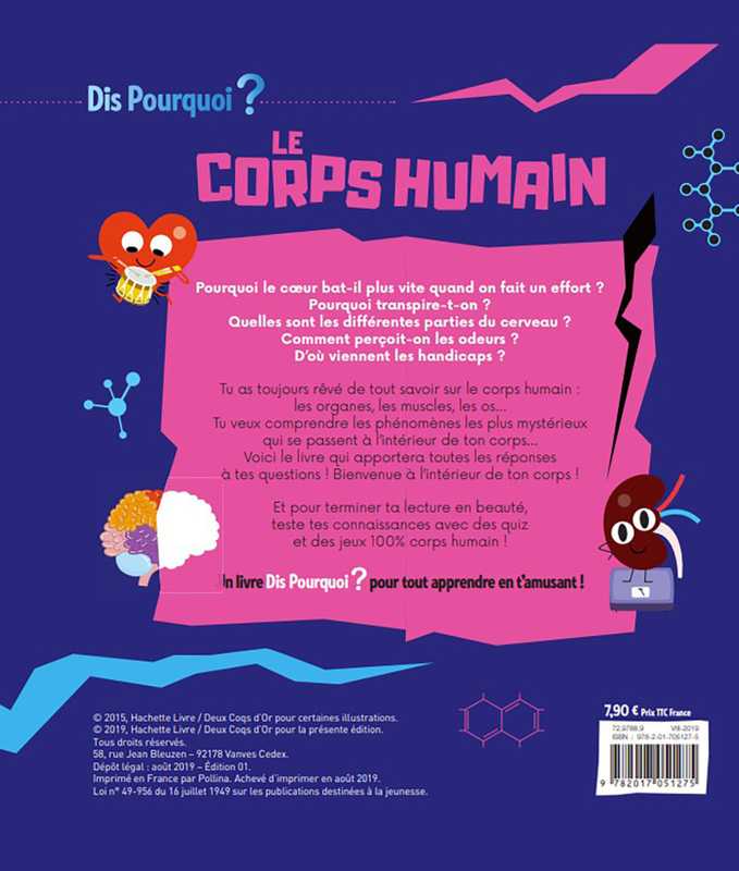 Pourquoi n'avons-nous pas tous la même couleur de peau ? A quoi servent les muscles ? Pourquoi transpire-t-on ? Combien y a t-il d'os dans le corps humain ? Une lecture interactive et facile d'accès, des textes sous forme de questions réponses, une maquette attractive et dynamique, avec la fin des jeux pour tester ses connaissances et un glossaire pour aller plus loin.