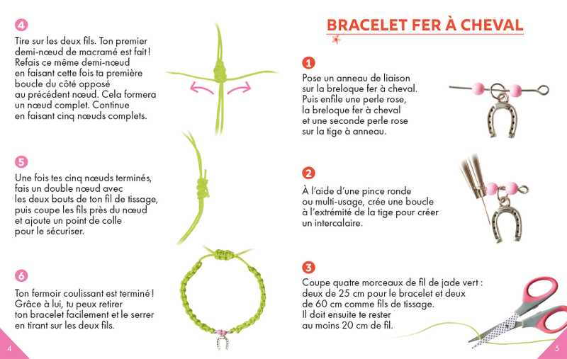Grâce aux pas-à-pas illustrés, monte tes bijoux et glisse la photo de ton poney préféré dans le médaillon du bracelet Mon poney !