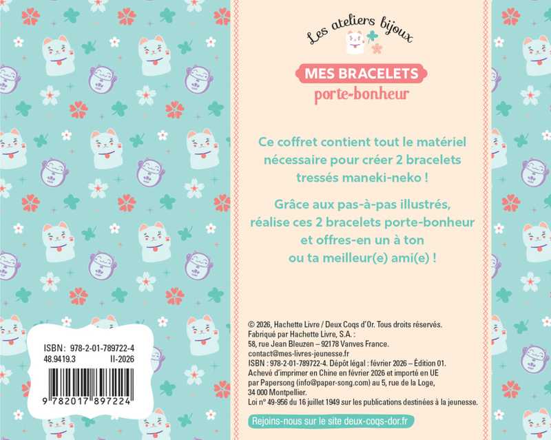 Ce coffret contient tout le matériel nécessaire pour créer 2 bracelets tressés maneki-neko !