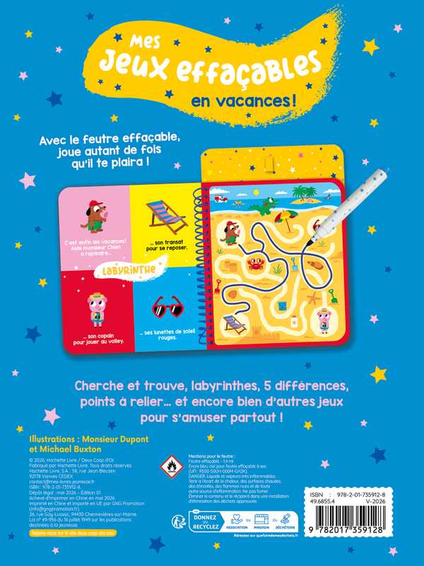 Avec le feutre effaçable, joue autant de fois qu'il te plaira !