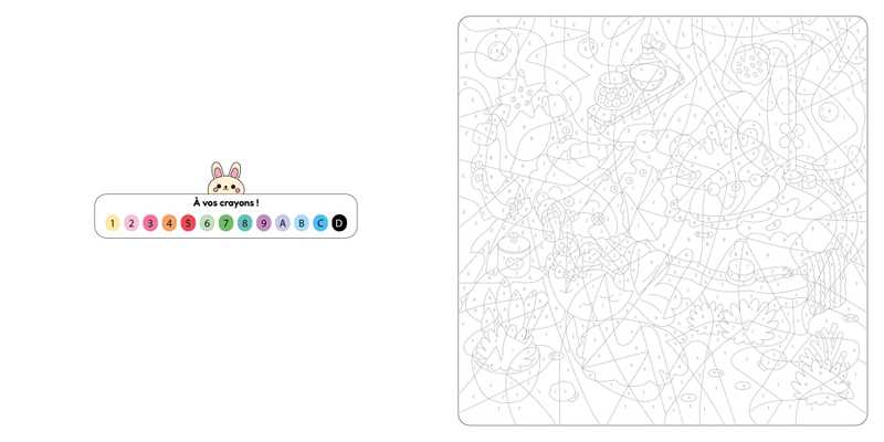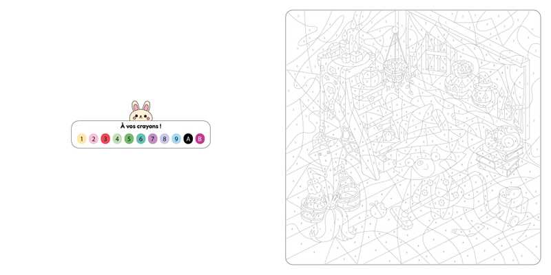 Un cahier de 64 pages 100 % cosy proposant 30 dessins cachés en noir et blanc à découvrir en les coloriant. Pour chacun d'eux, un code couleurs guide l'enfant dans son activité. Des images très détaillées, drôles et affectives, dans un style kawaii. Toutes sortes d'animaux mignons sont mis en scène dans un univers Fantasy : forêt enchantée, cuisine magique, cabinet de curiosités, arbre-maison, etc. À la fin du cahier, les dessins sont présentés en couleurs.
