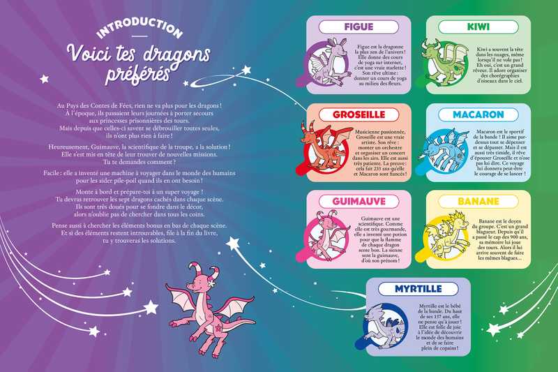 Alors, prépare-toi à de folles aventures et ouvre l’œil pour retrouver les dragons et une multitude de petits éléments cachés dans les scènes de ton livre.