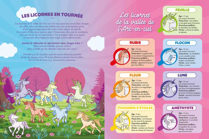 Sauras-tu retrouver tes 7 licornes préférées cachées dans les 16 scènes de ton livre ?