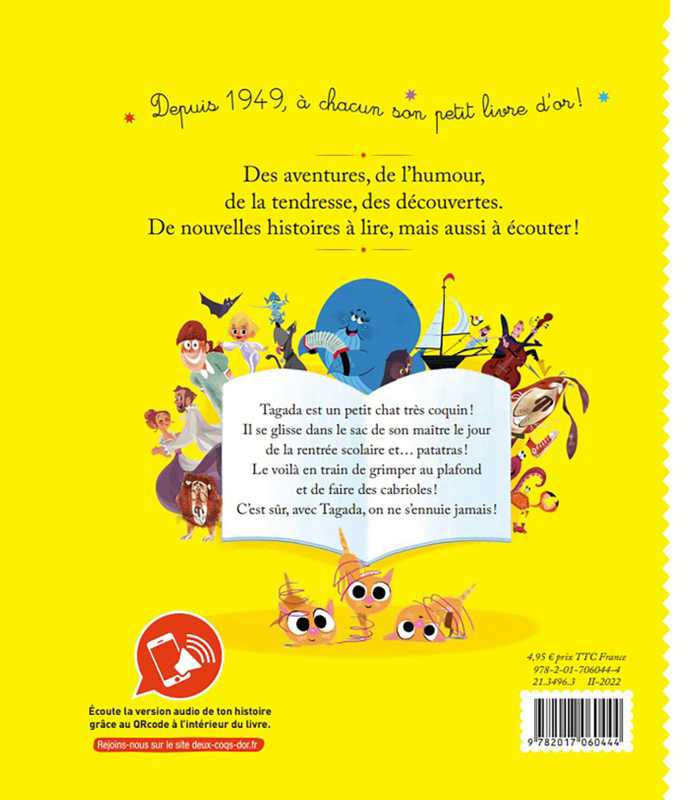 Tagada est un petit chat très coquin ! Il se glisse dans le sac de son maître le jour de la rentrée scolaire et… patatras ! Le voilà en train de grimper au plafond et de faire des cabrioles ! C’est sûr, avec Tagada, on ne s’ennuie jamais !