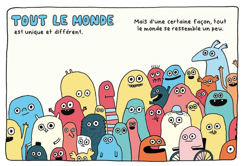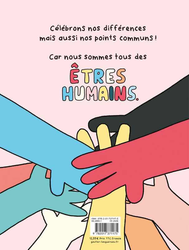 Nous sommes tous uniques et différents, mais nous avons plus de points communs que nous le pensons. Petits ou grands, jeunes ou âgés, nous éprouvons tous de la peur, de la joie, de la colère. Nous avons tous besoin des autres de temps en temps et les autres peuvent avoir besoin de nous. Nous sommes tous des êtres humains. Un livre universel plein d'énergie et d'humour pour s'accepter tel que l'on est et traiter les autres avec respect.
