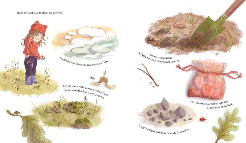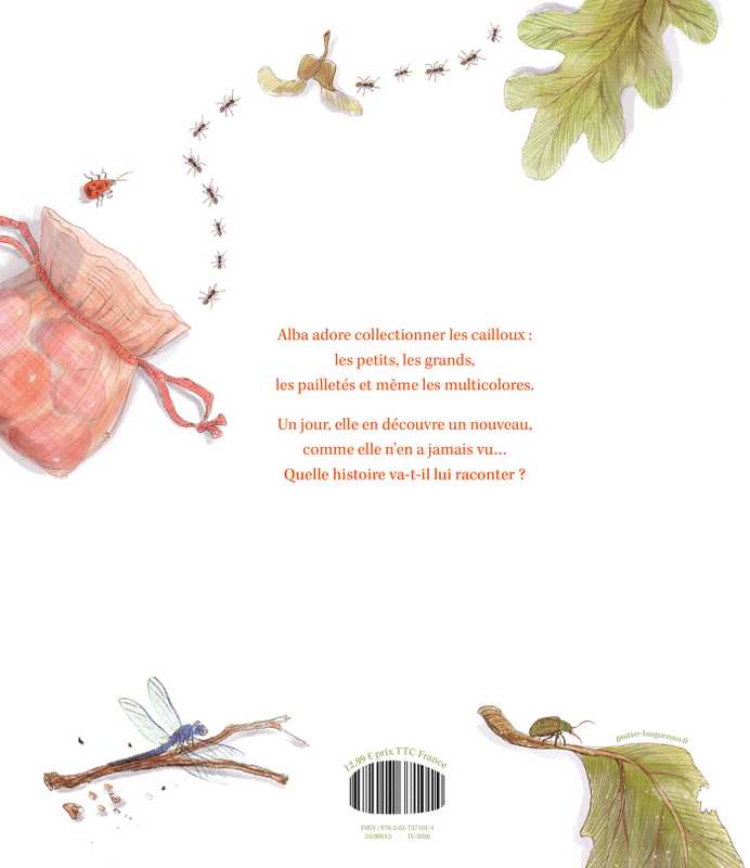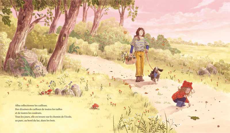 Alba collectionne les cailloux, tous les cailloux : des petits, des grands, des pailletés et même des multicolores. À chaque trouvaille, son imagination prend vie et invente la plus belle des histoires. A-t-il construit un château ou un gratte-ciel, vu la mer ou les dinosaures ?